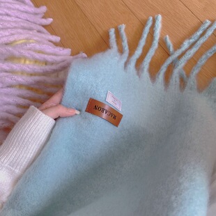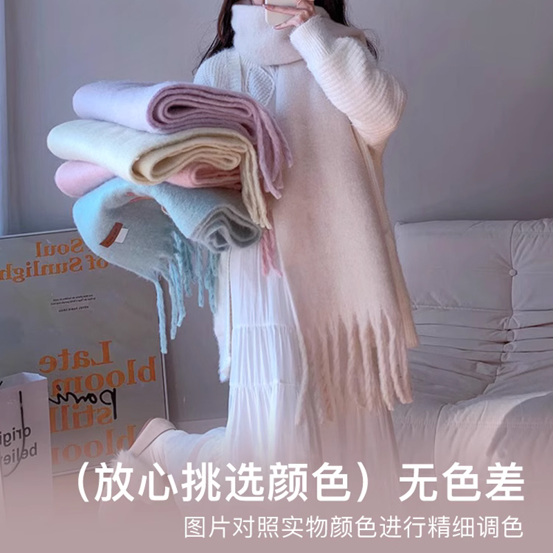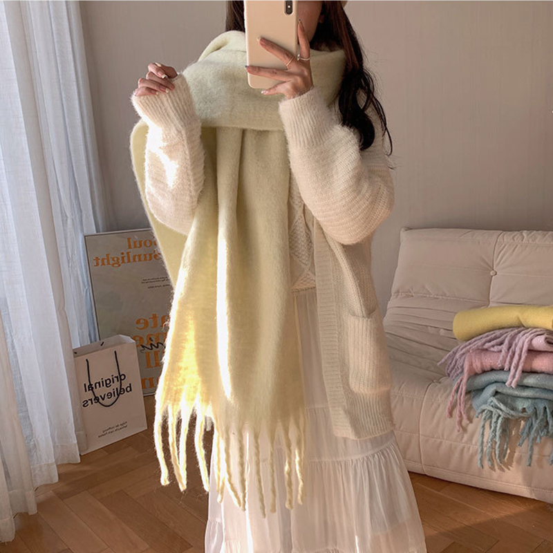 纯色围巾女冬季 秋冬长围脖女生加厚毛绒高级感鹅黄色 宽大披肩韩版