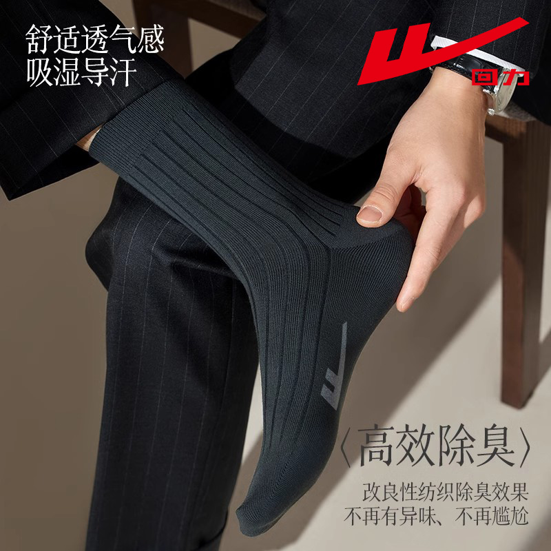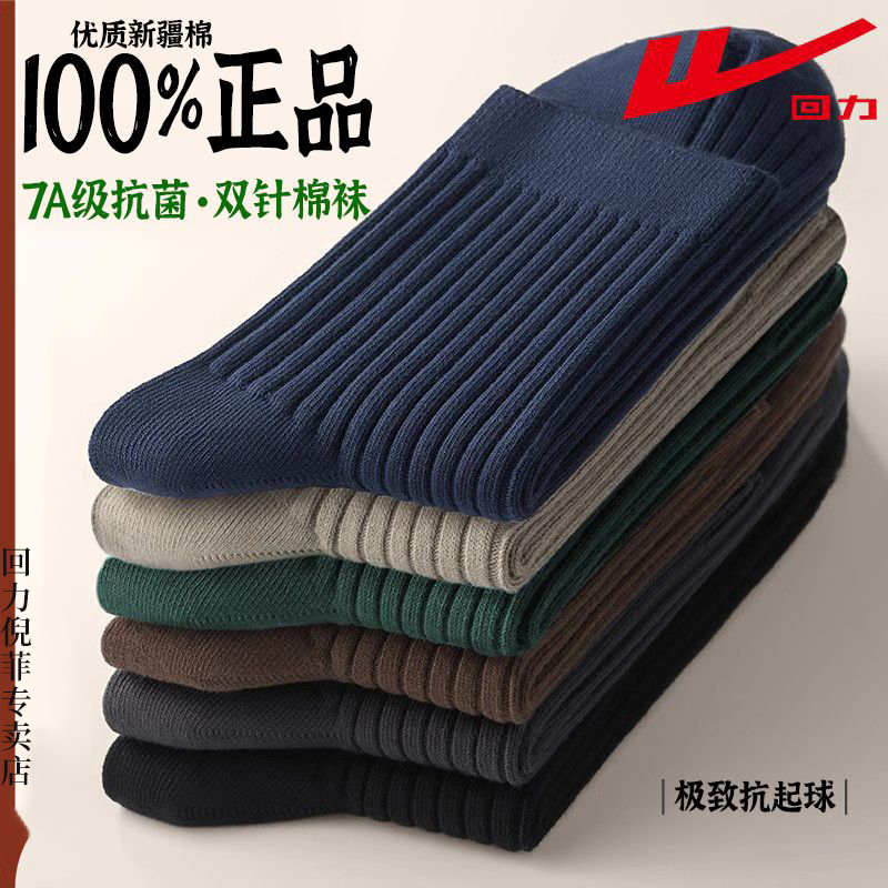 长筒袜100%正品 回力纯色新疆棉袜子男款 春秋吸汗防臭中筒袜夏季