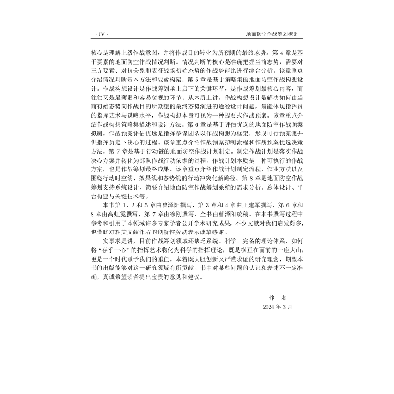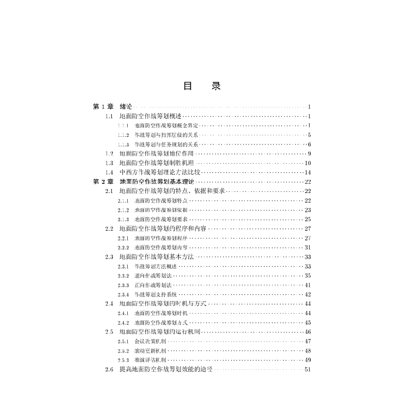 依据与要求 程序与内容 情况判断 地面防空作战筹划 总体设计参考书籍 要素 概念与特点 等理论 地面防空作战筹划概论 时机与方式