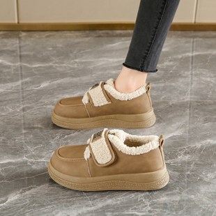 孕妇保暖棉鞋 真皮加绒乐福鞋 英伦风厚底豆豆小皮鞋 2025新款 女冬季