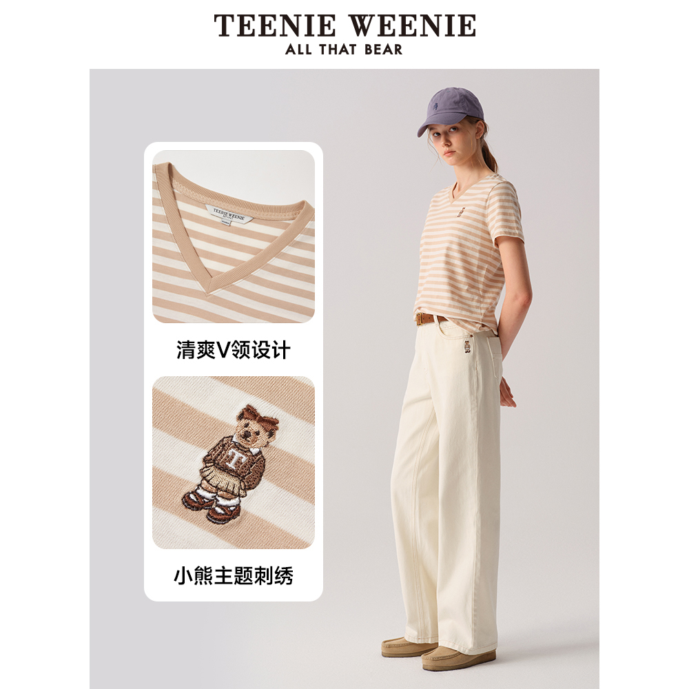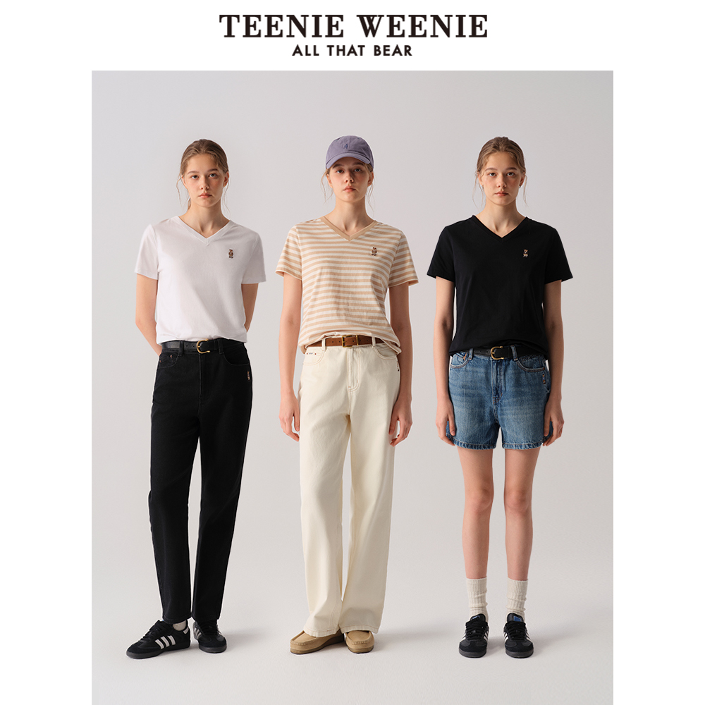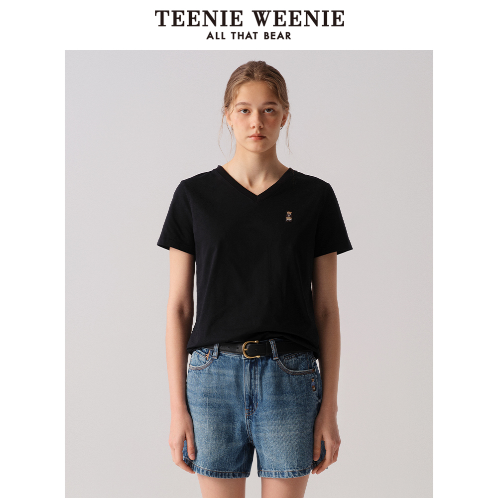 新款 T恤2025年夏季 基础V领宽松舒适上衣 短袖 TeenieWeenie小熊女装