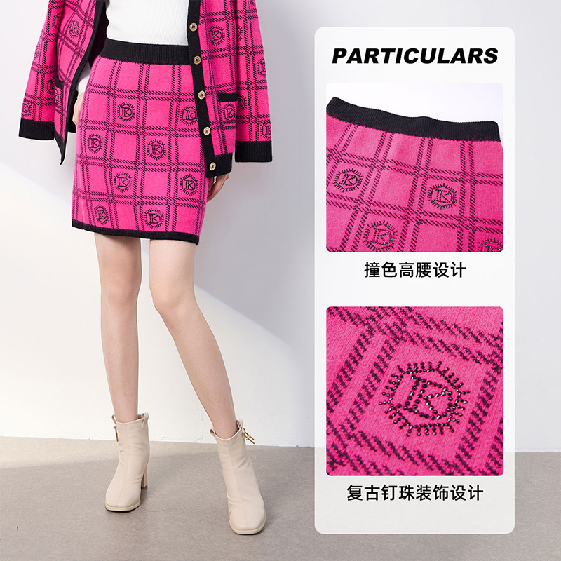 佐丹奴中长花苞裙女秋冬新款 磨毛破骨松紧腰松弛感半身裙13465866