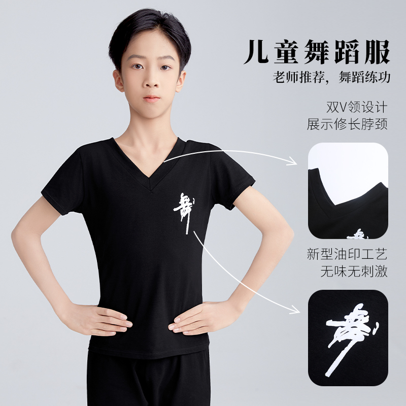 男童舞蹈服上衣拉丁舞套装 练功服儿童中国舞基训服 男生集训服长袖
