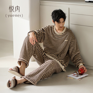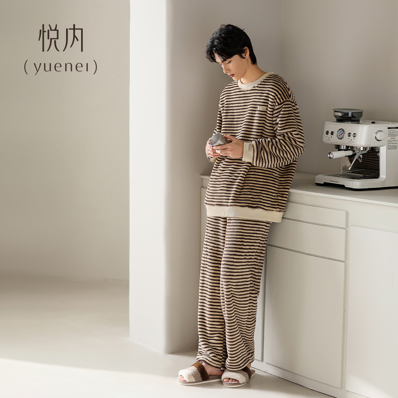 珊瑚绒加绒加厚法兰绒家居服冬天保暖套装 冬季 秋冬款 悦内睡衣男士