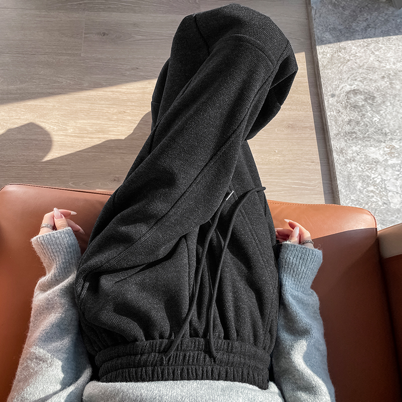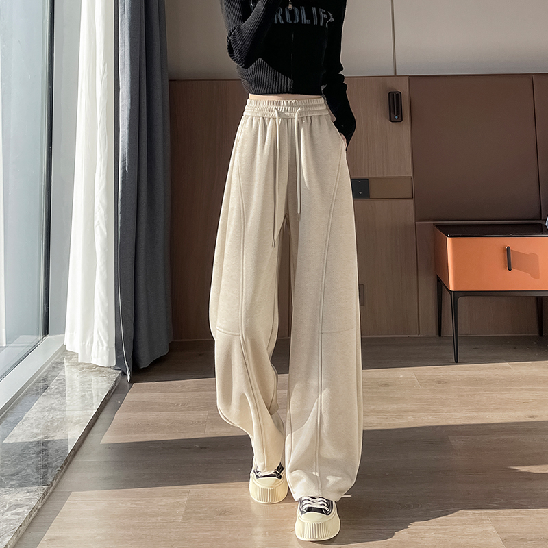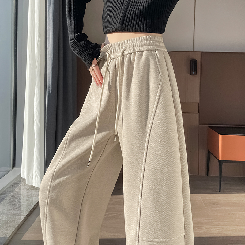 加绒加厚人字纹羊毛呢香蕉裤 女秋冬高腰宽松垂感休闲阔腿拖地长裤