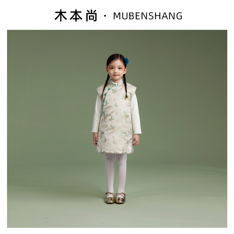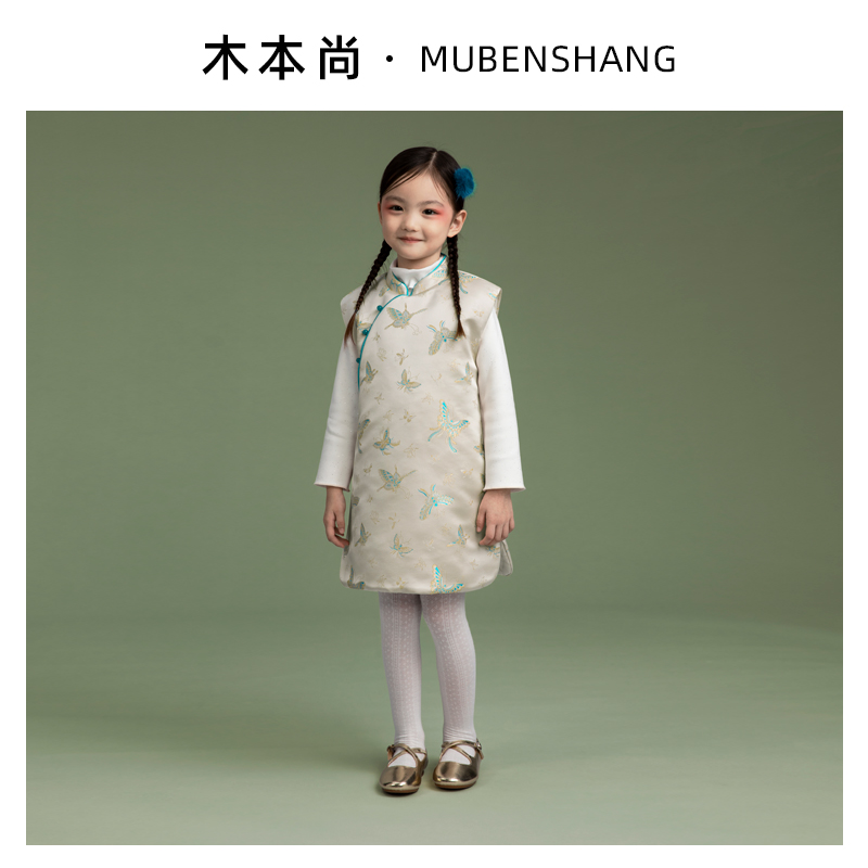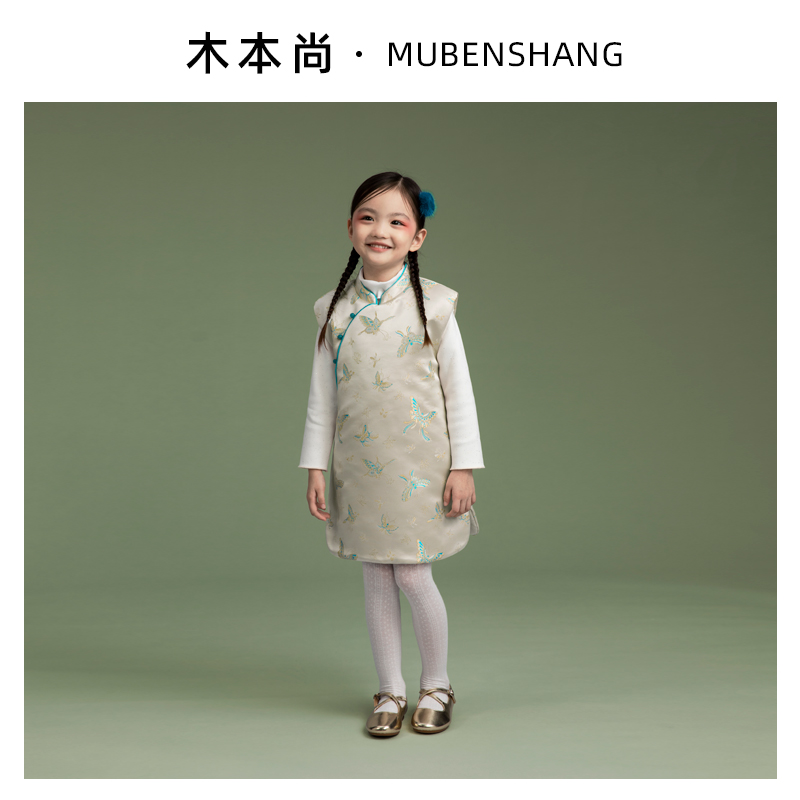 木本尚女童冬装 宝宝背心裙提花刺绣夹棉加厚 汉服旗袍裙2025新款