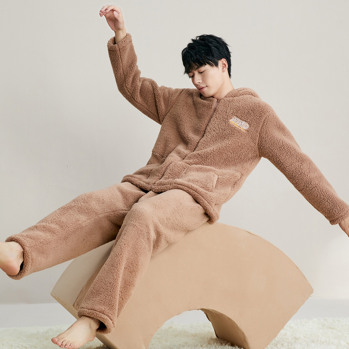 睡衣秋冬款 长毛绒男士 加厚加绒保暖珊瑚绒 清仓仅剩加大码 秋鹿