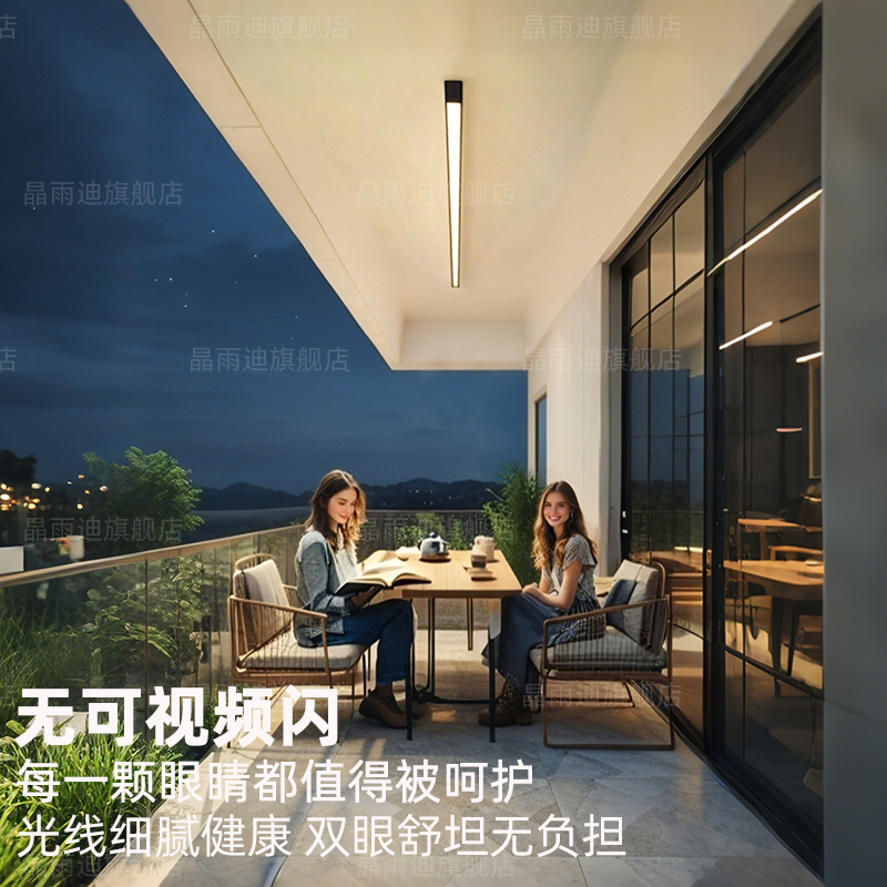 玻璃阳光房专用灯长条形超薄阳台吸顶灯庭院屋檐灯超亮雨棚照明灯