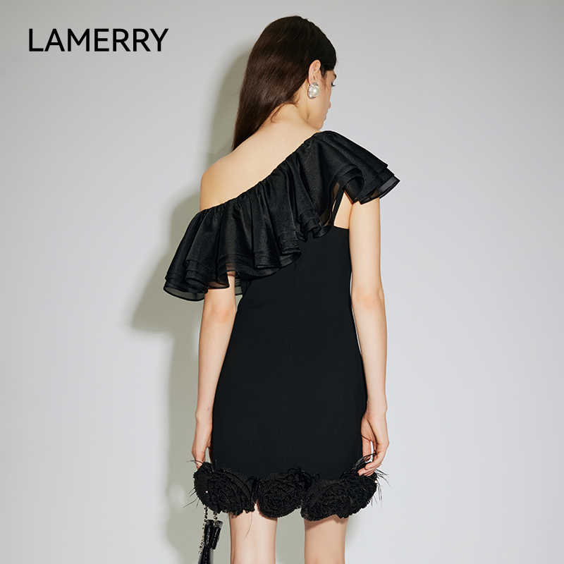 LAMERRY 朗美睿黑色欧根纱薄纱披肩女性感百搭设计感2025春夏新品