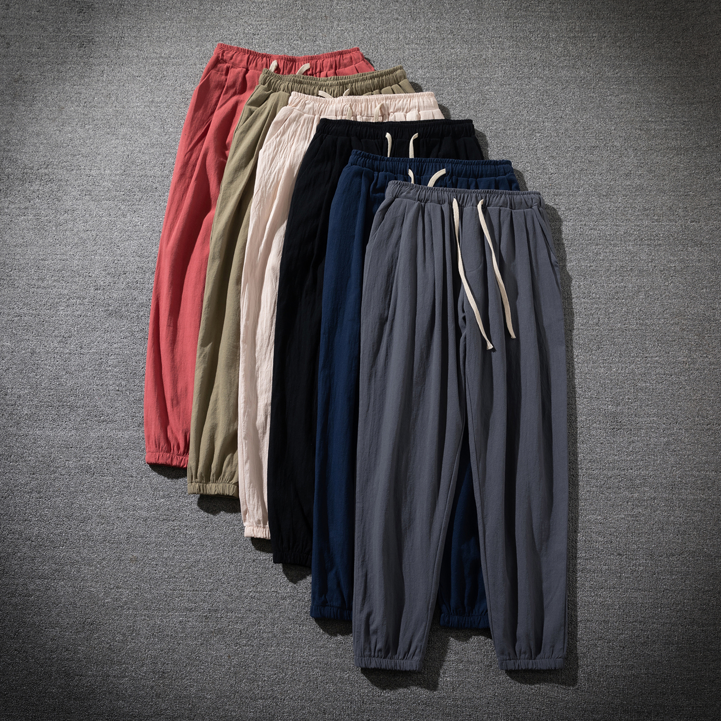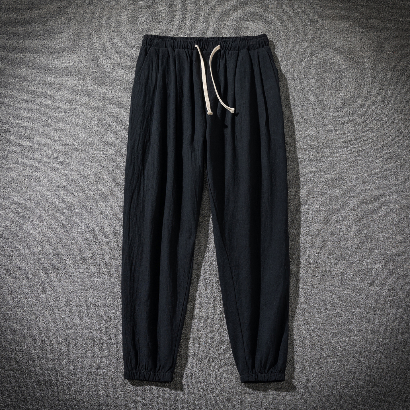 吸湿透气哈伦9分裤 日系复古束脚九分裤 宽松大码 亚麻休闲裤 子 男士