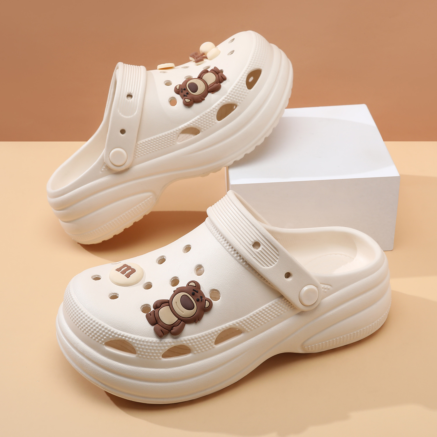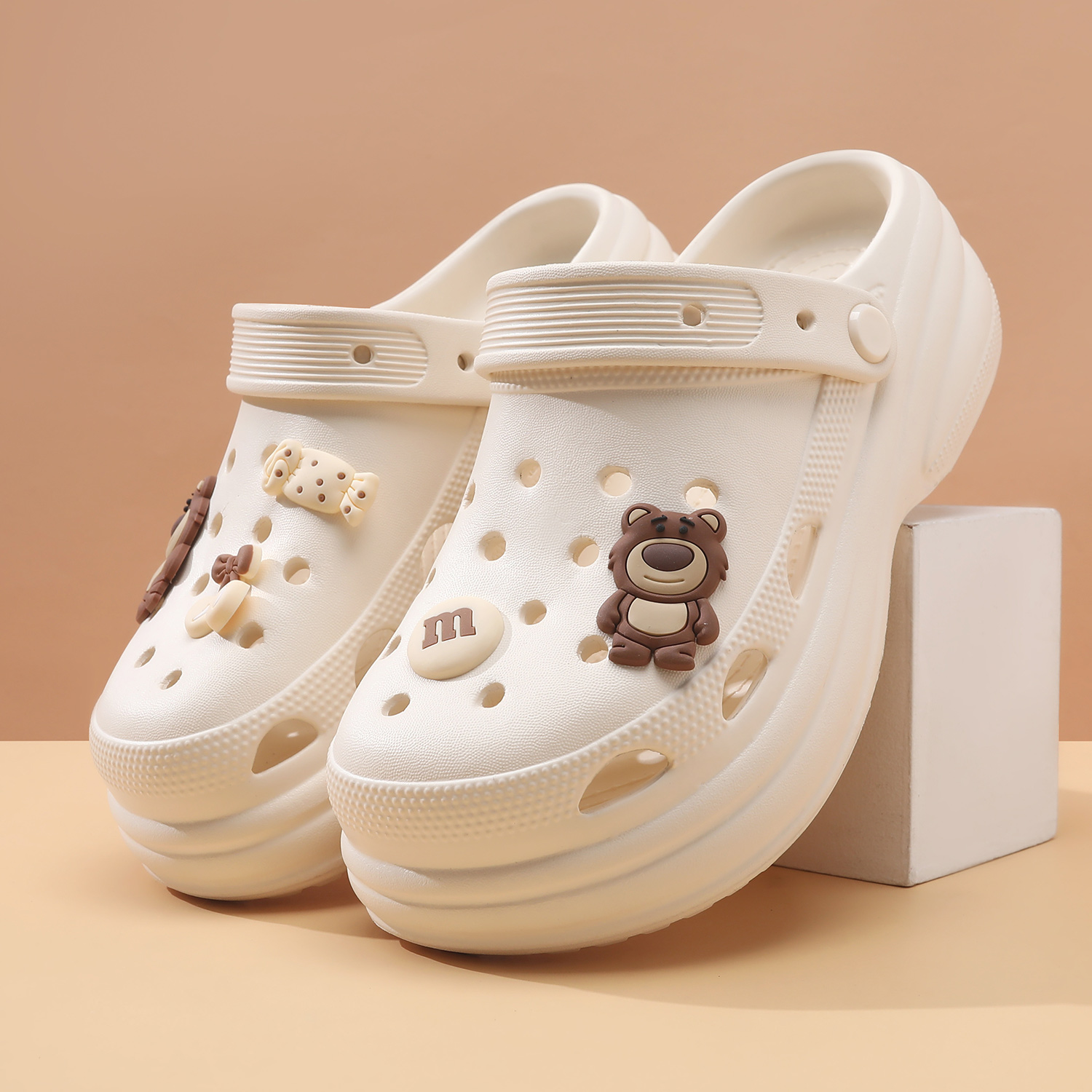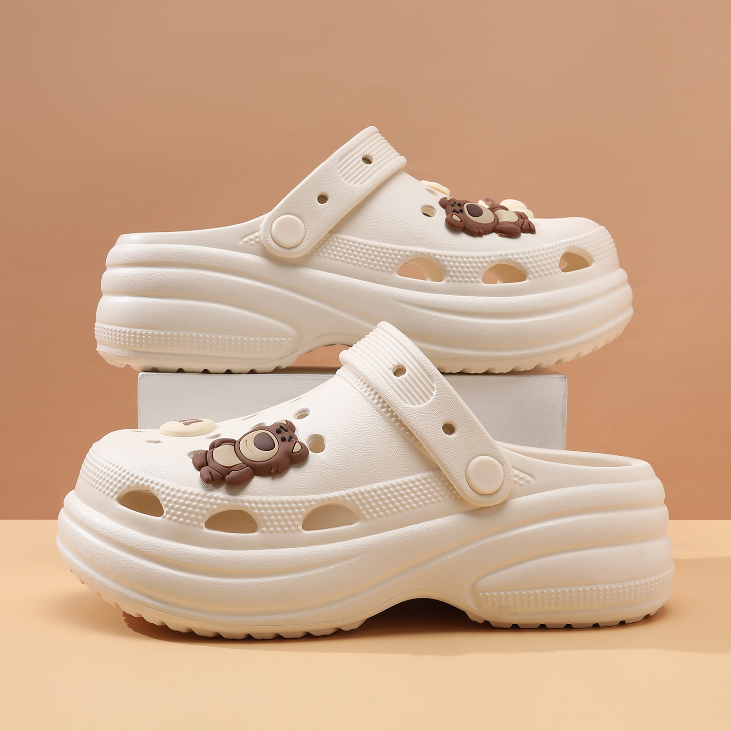 户外防滑沙滩鞋 朴西奶酪情侣厚底踩屎感洞洞鞋 包头拖鞋 夏季 男 女款