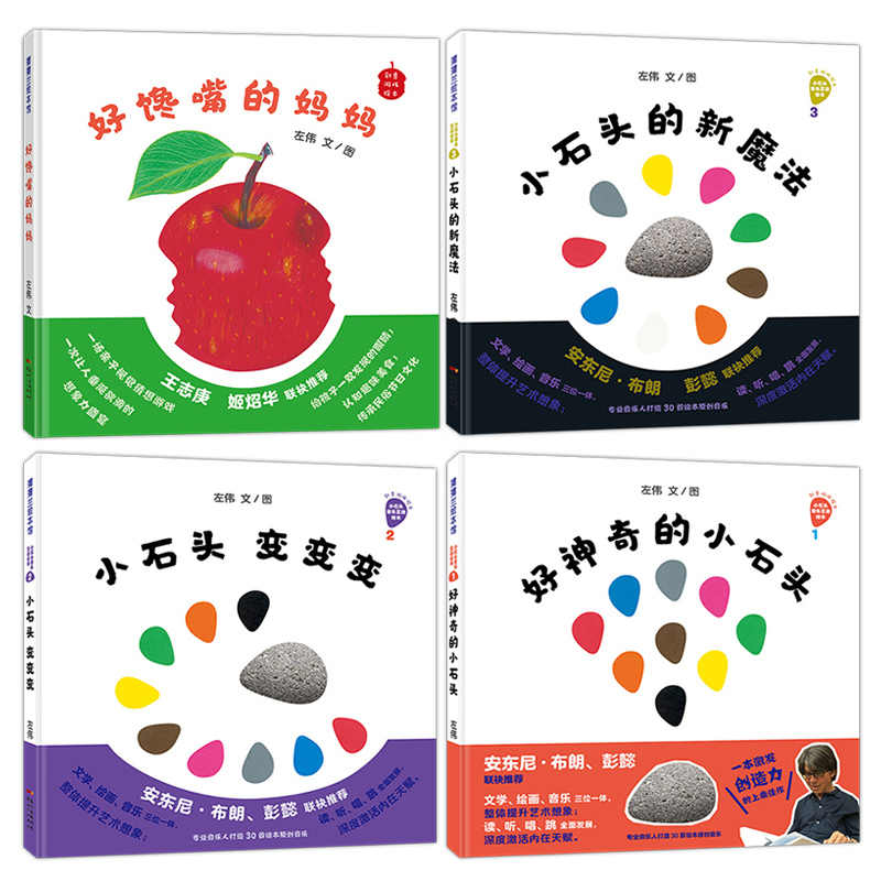 妈妈 绘本 3岁以上 蒲蒲兰精装 挖孔认知 音乐互动游戏儿歌 新魔法好馋嘴 小石头变变变小石头 好神奇 全四册 创意游戏绘本系列