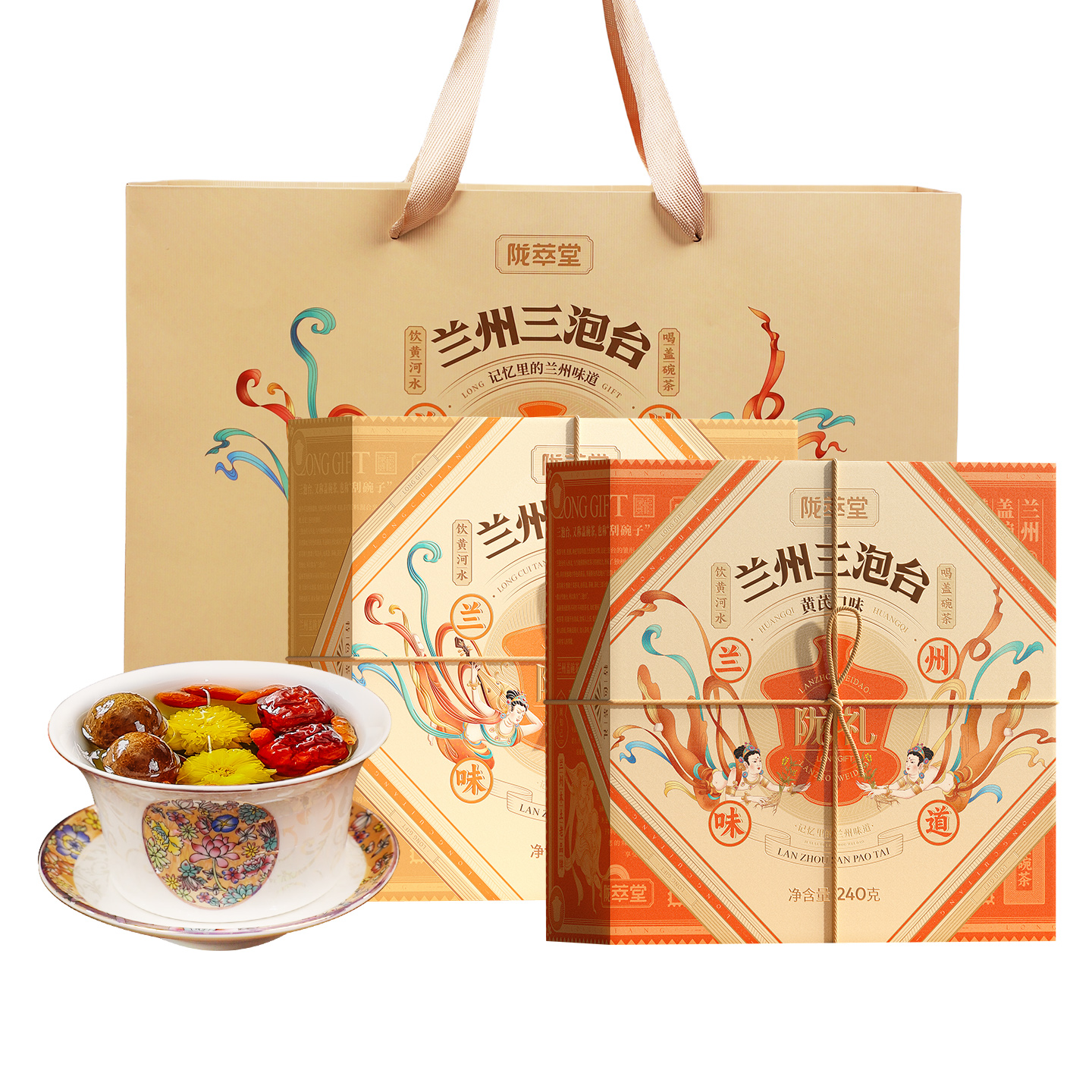 陇萃堂兰州三泡台茶盖碗八宝茶经典 黄芪三炮台甘肃特产特色陇礼