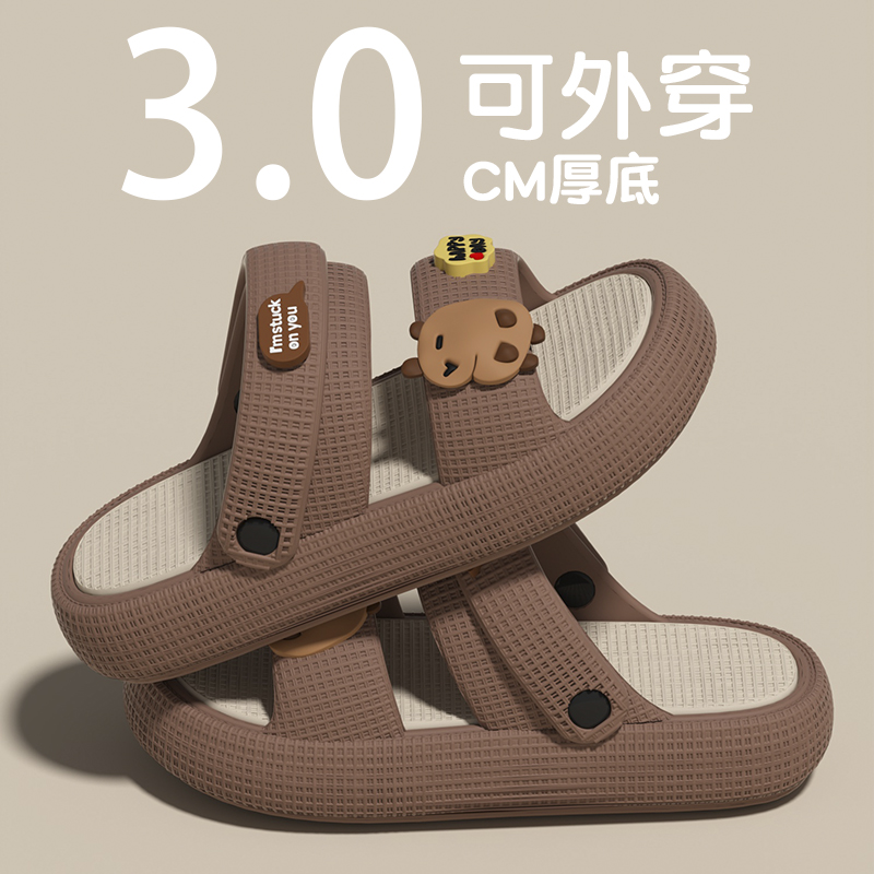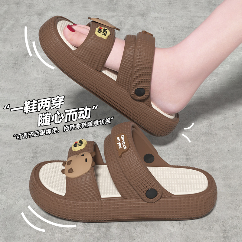 可爱卡通两穿卡皮巴拉厚底防滑沙滩凉鞋 外穿2025新款 女夏季 凉拖鞋