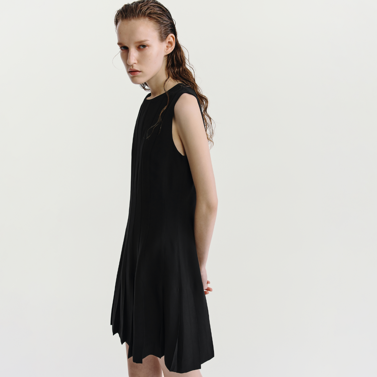 压褶女士连衣裙2025夏季 小黑裙收腰修身 Q2372 短款 HAVVA气质无袖