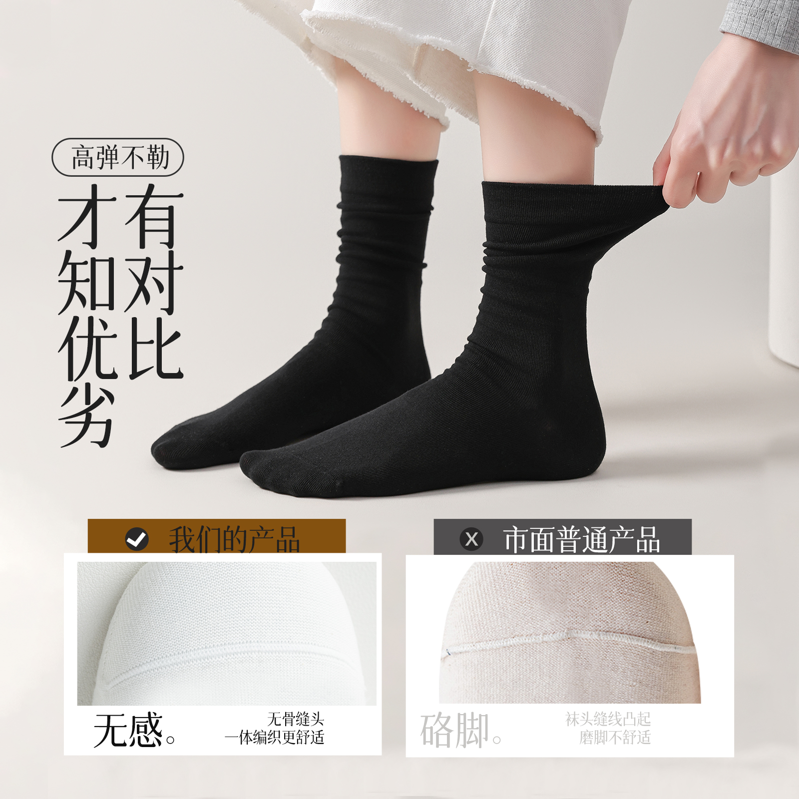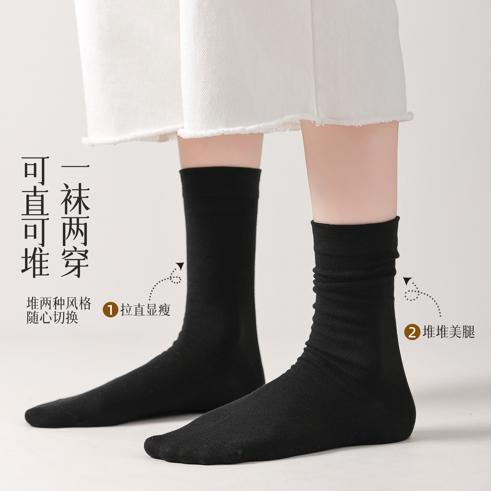 帕兰朵袜子女中筒袜春秋季 棉袜吸汗透气纯色百搭堆堆袜防臭长筒袜