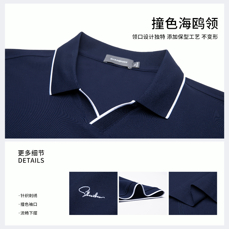 短袖 纯棉海鸥领商务休闲爸爸polo衫 t恤男款 夏季 2025新款 杉杉男士