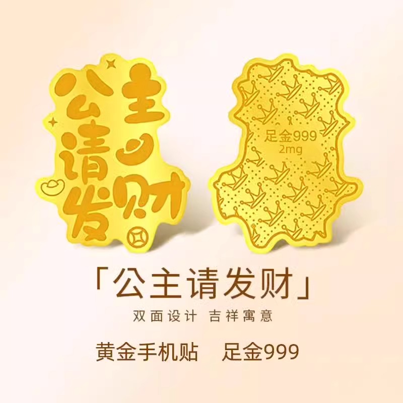 蛇年足金999手机贴黄金纸金片公主请发财暴富招财新年送男女朋友礼物