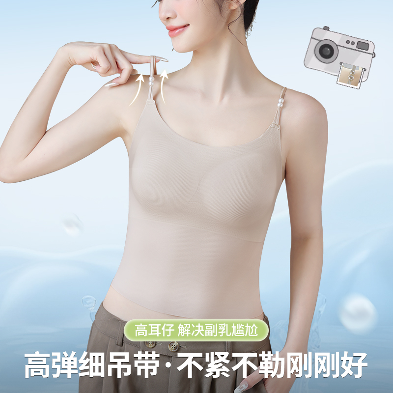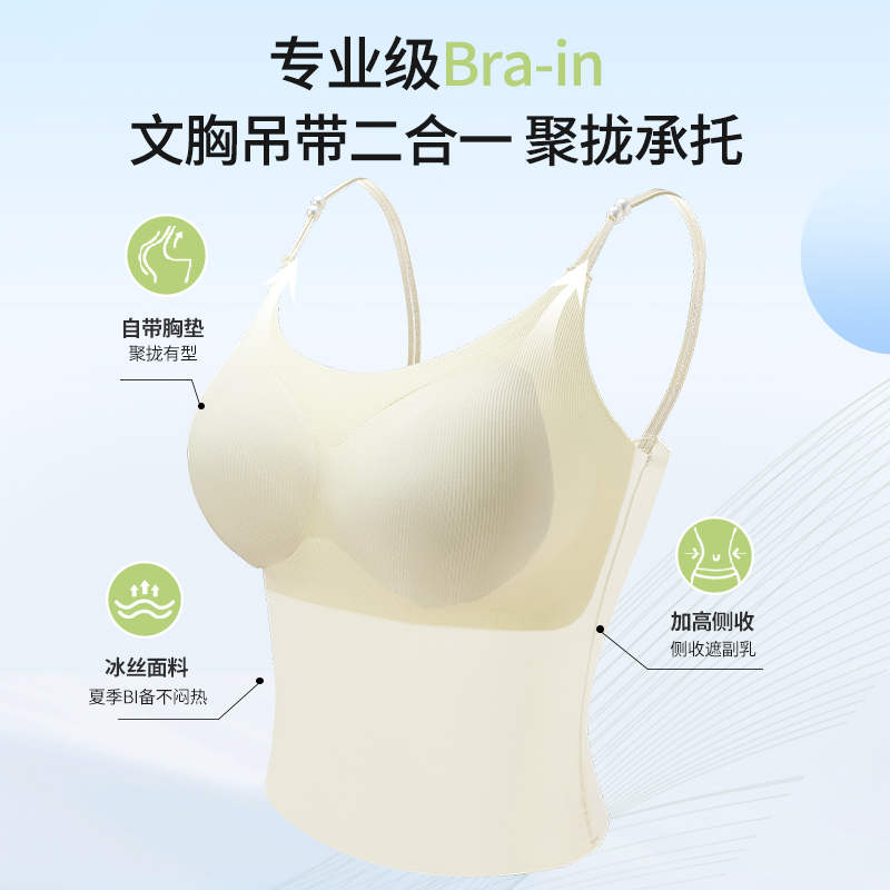 可外漏细肩带美背内衣 爆款 冰丝吊带背心女文胸一体式 2025新款