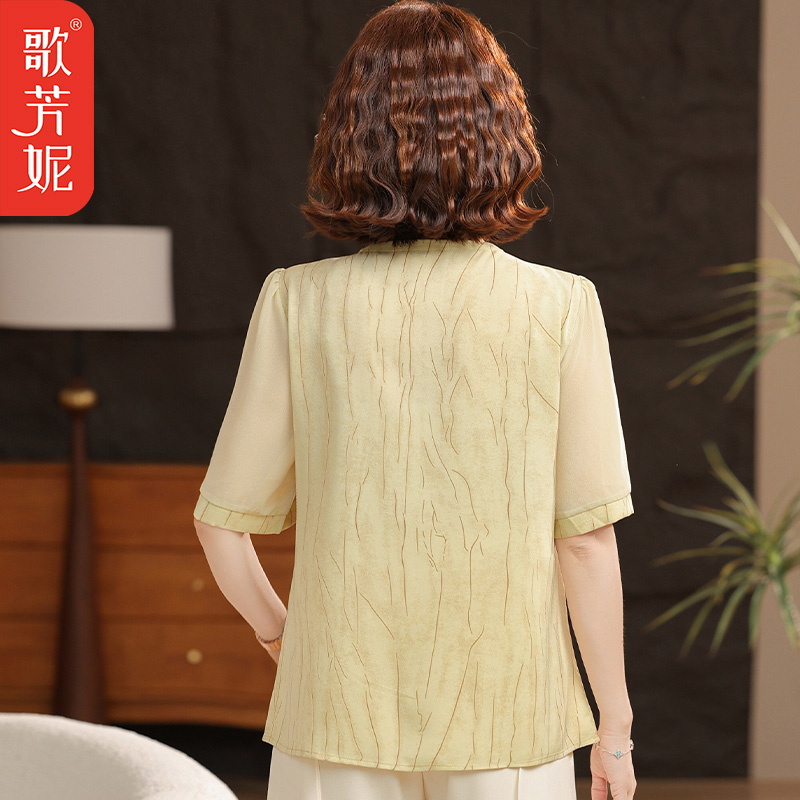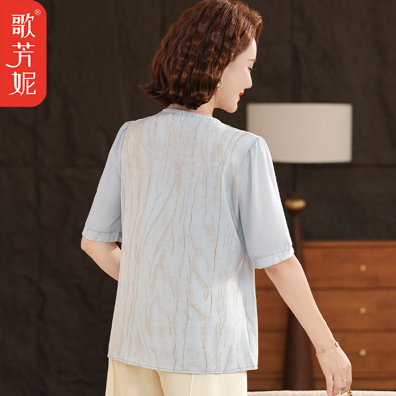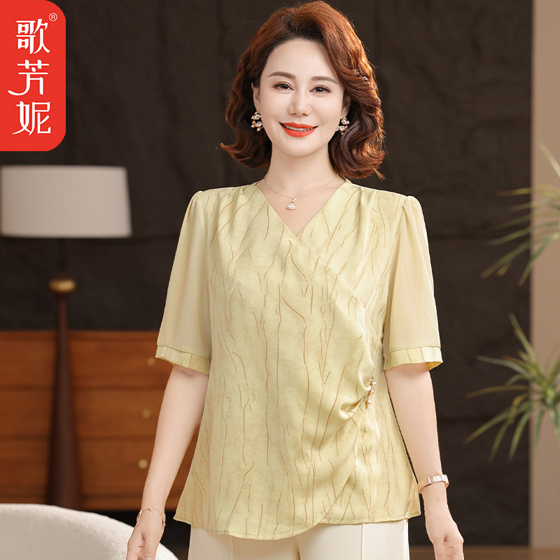 雪纺上衣时尚 小衫 2025夏季 洋气质减龄中年妈妈短袖 新款 中老年女装
