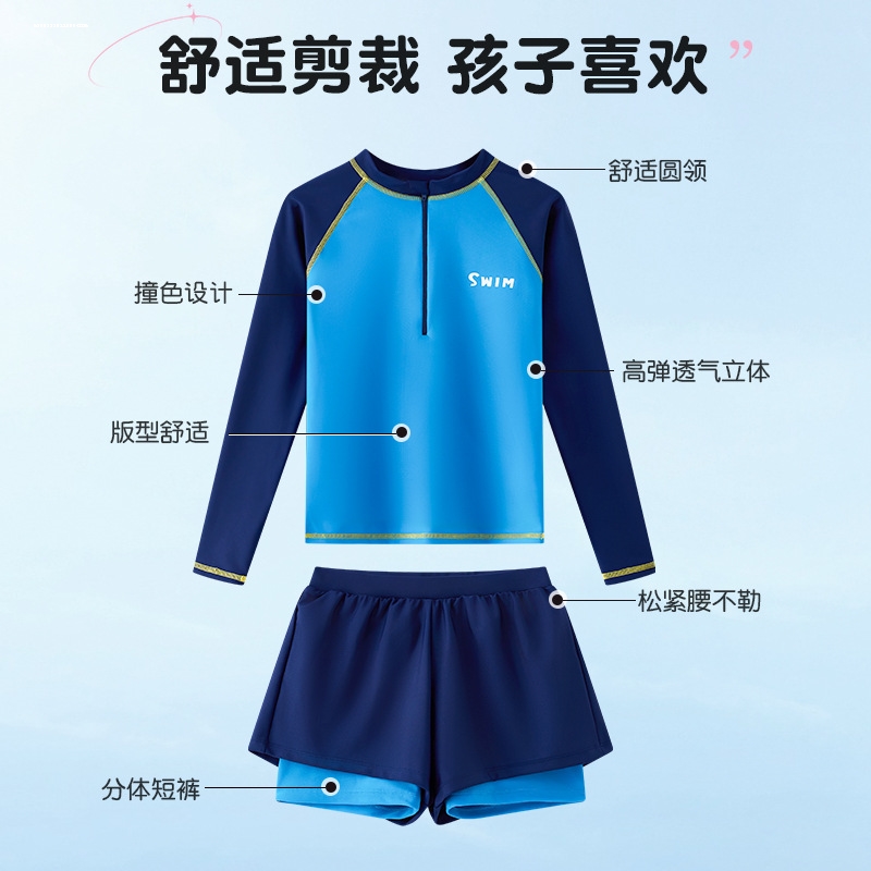 男童海边防晒男宝宝套装 男生泳衣儿童夏季 分体帅气泳装 短袖 新潮款
