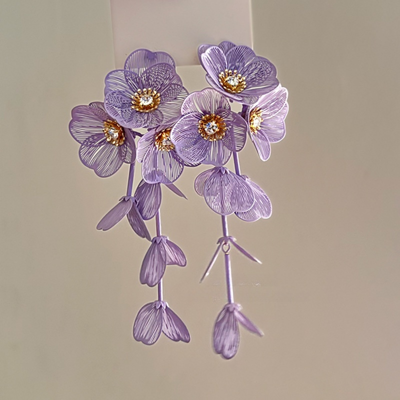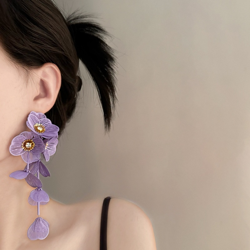 气质度假耳饰耳钉拎环 时尚 微创紫金花 高级感紫色花朵流苏耳环