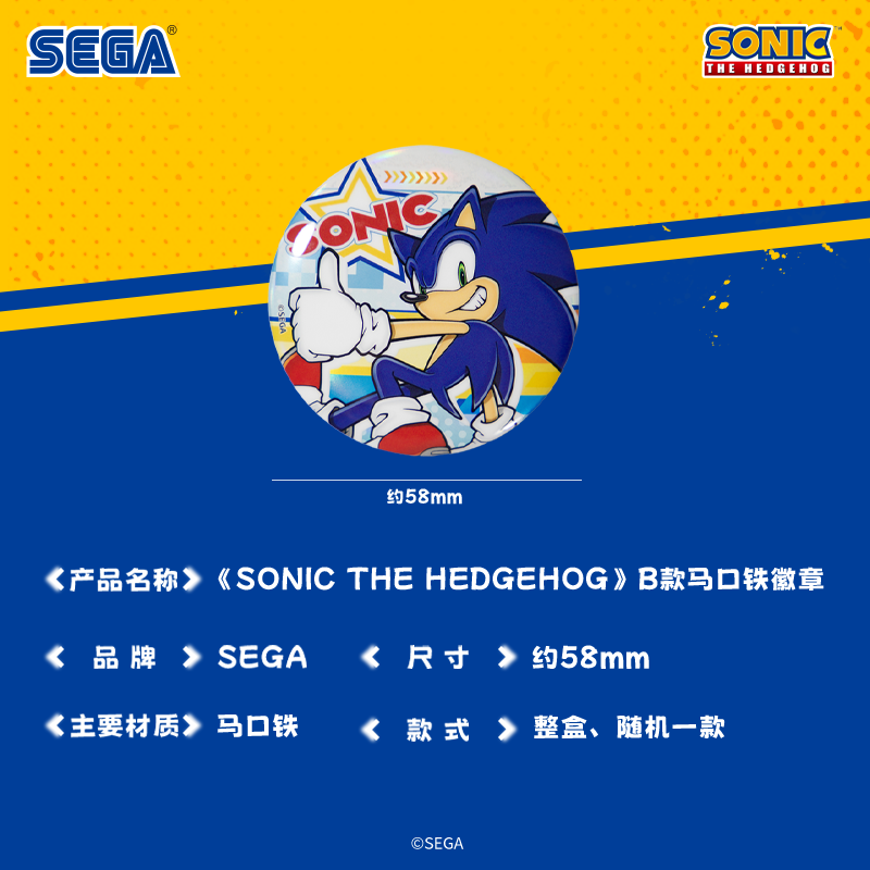 SEGA世嘉 马口铁徽章吧唧盲盒世嘉游戏周边礼物 刺猬索尼克B款