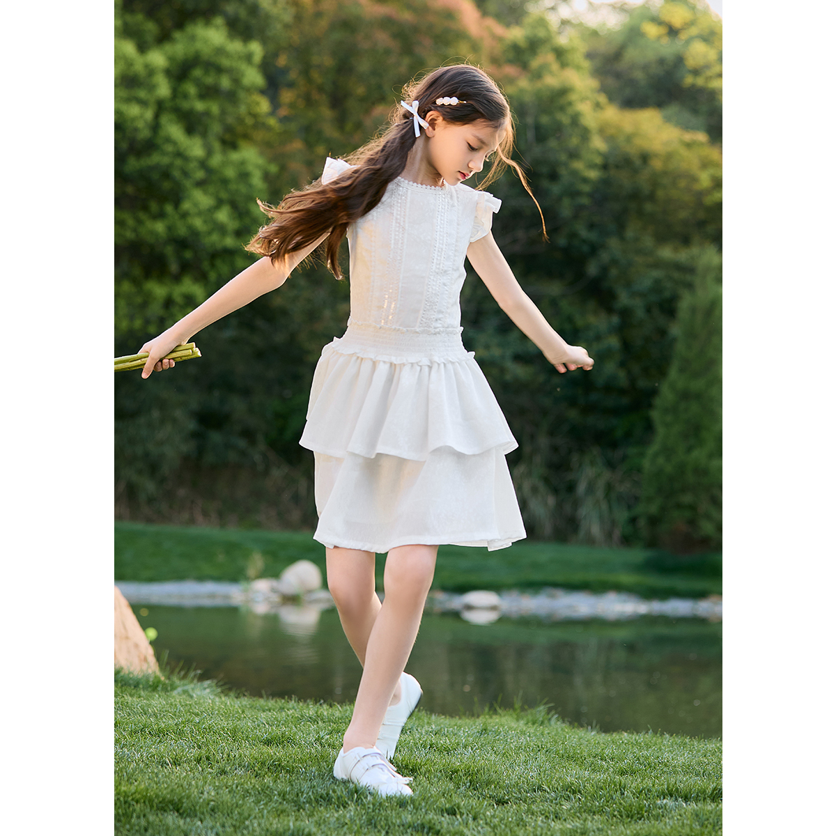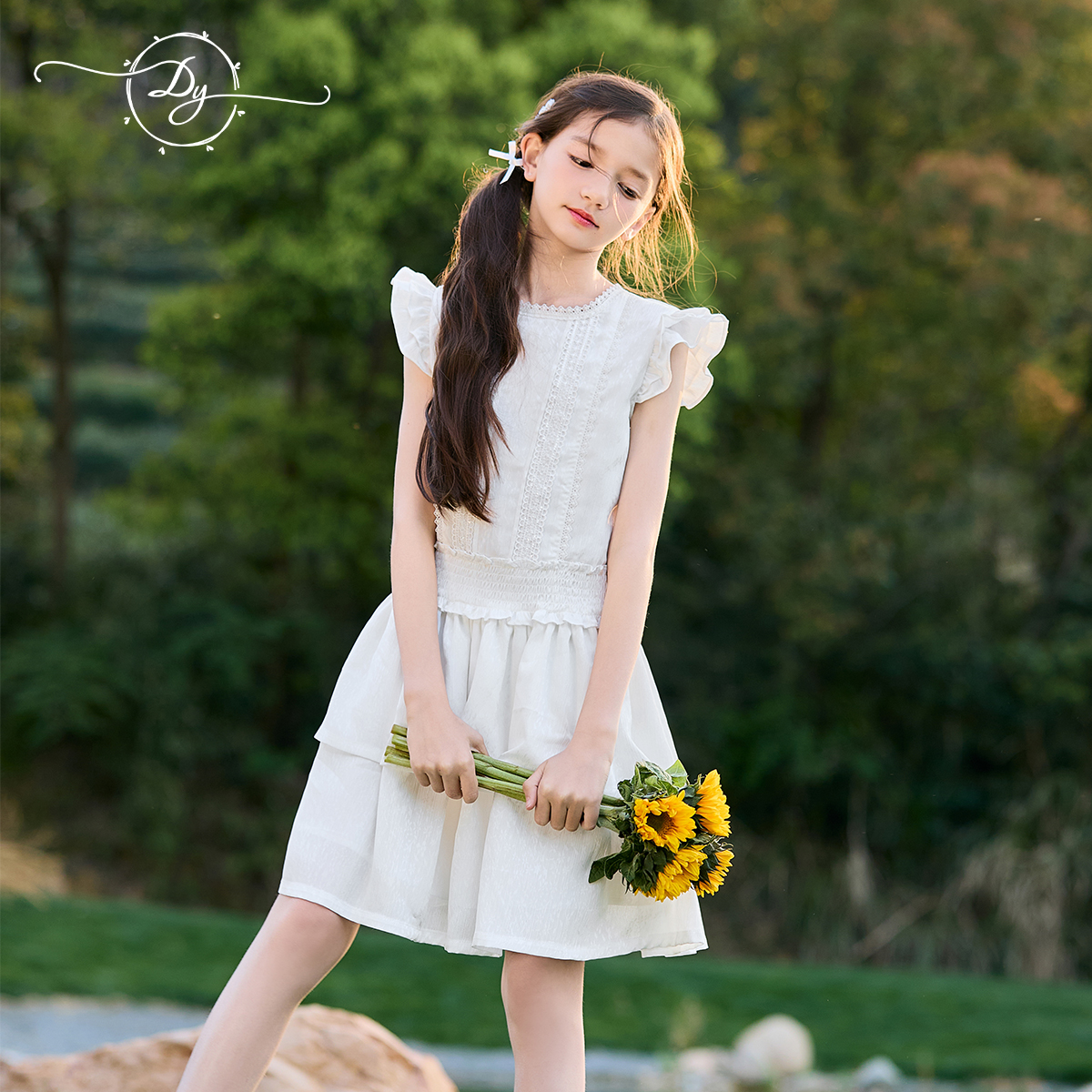 wana 浮雕杏温婉休闲连衣裙女 try重工刺绣蕾丝飘逸连衣裙2025新品