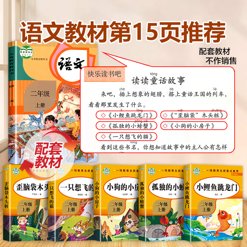 二年级上册快乐读书吧人民教育出版 人教版 社小鲤鱼跳龙门必读课外书正版 孤独 猫小狗小房子上学期上 小螃蟹一只想飞 老师推荐