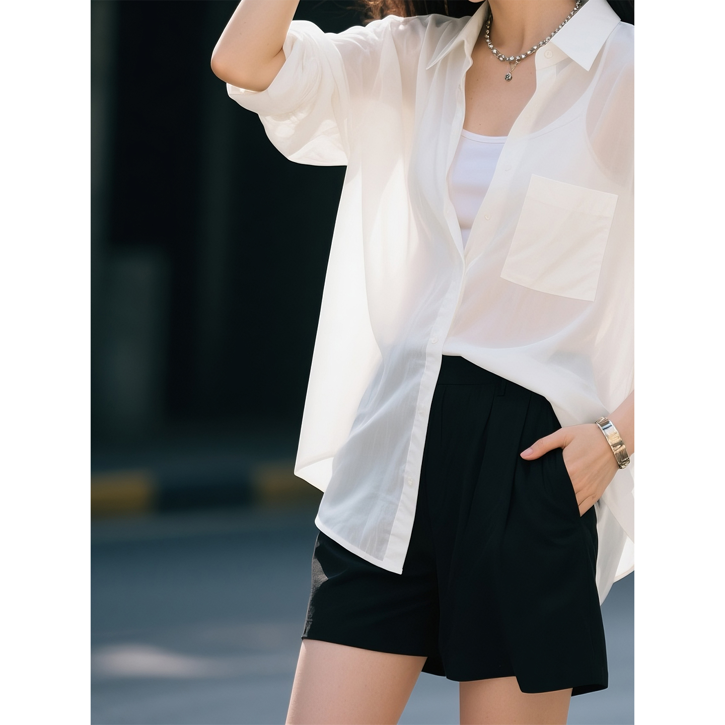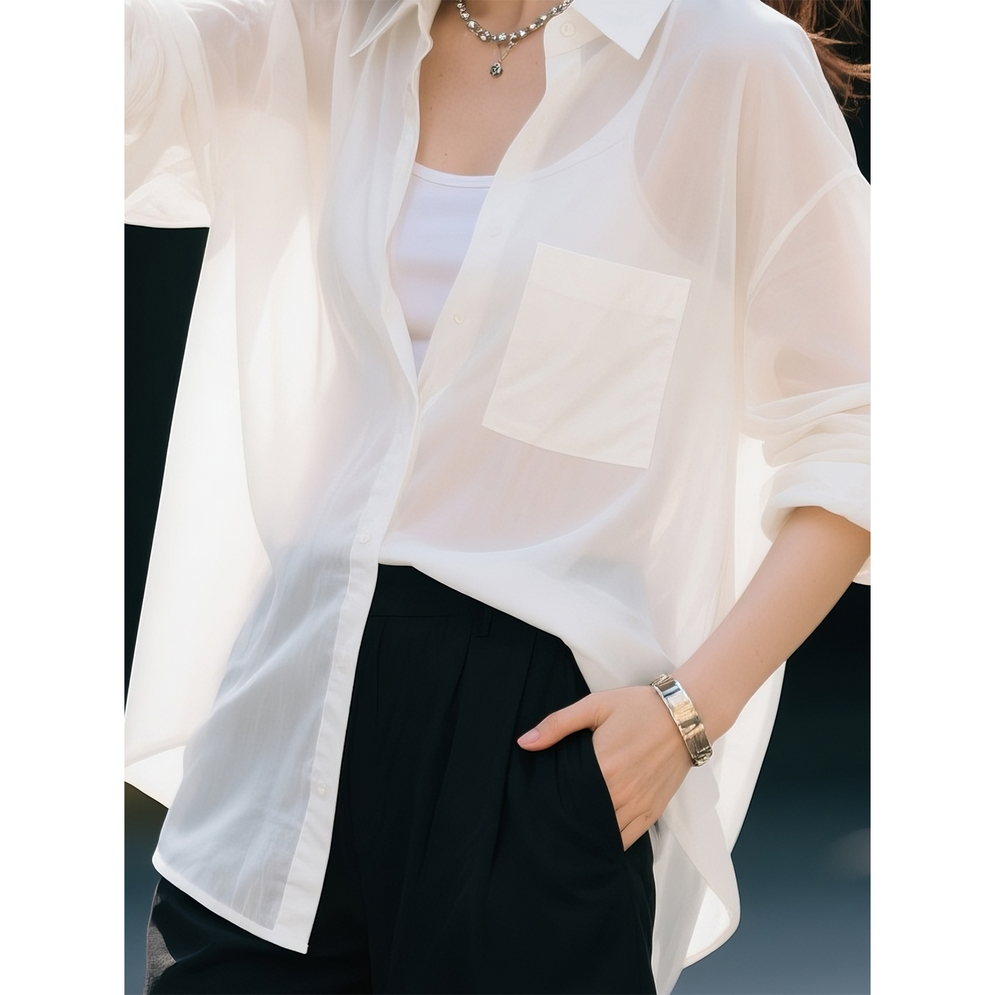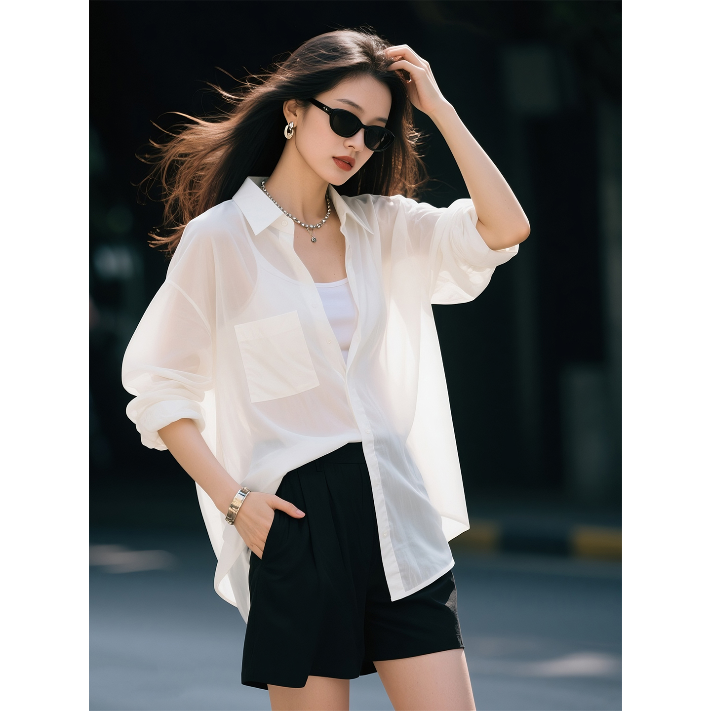 防晒衬衣薄款 白色莱赛尔天丝衬衫 宽松长袖 新款 上衣 女2025年夏季