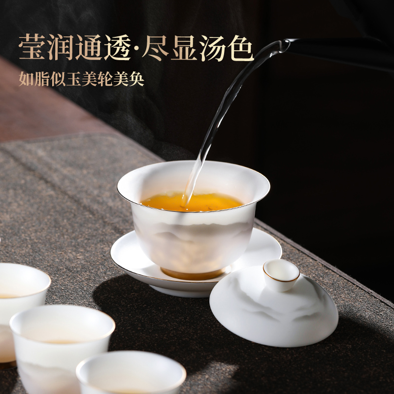 羊脂玉白瓷盖碗茶杯单个家用泡茶碗三才盖碗盖子功夫茶具大号高档