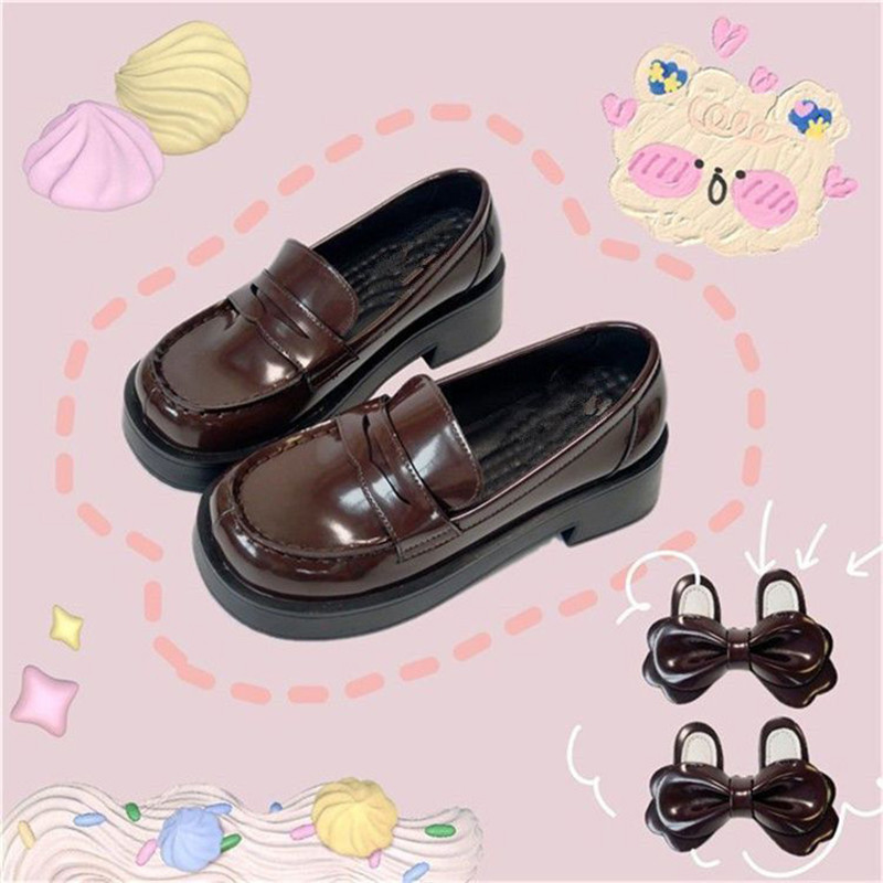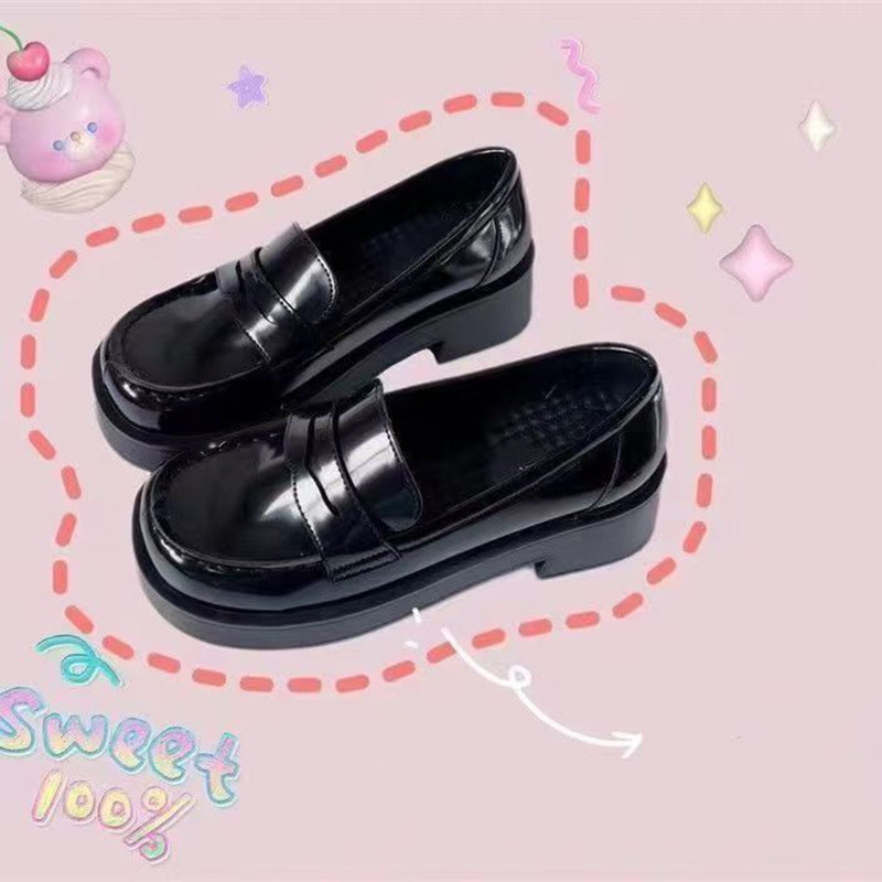 豆豆鞋 女小白包头松糕小皮大平跟芭蕾舞法式 黑色山茶花 配裙皮鞋 鞋