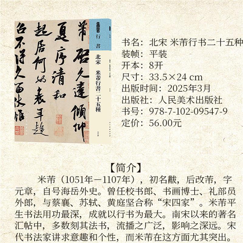 行书 9787102095479 北宋米芾行书二十五种 社 精选中国书法典范之作 人民美术出版 人美书谱