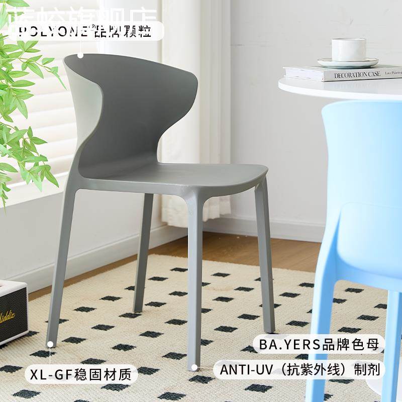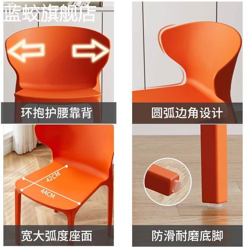 收纳堆叠电脑人体工学 现代简约家用加厚成人靠背 椅摆件饰品 椅 蓝蛟北欧塑料餐