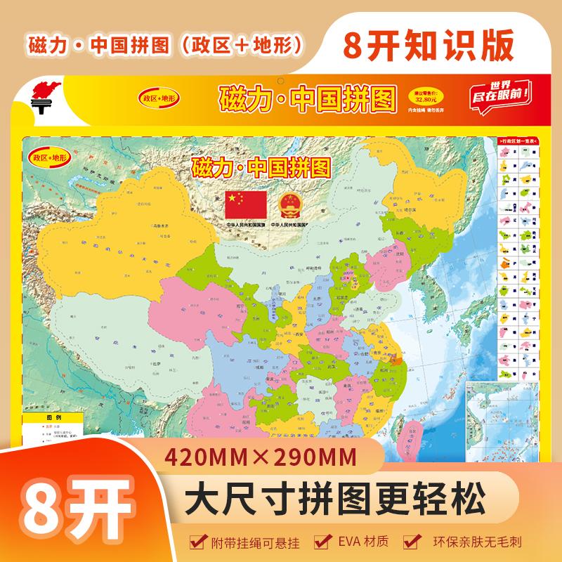 社 山东省地图出版 国家 地区概况社科 图书籍 磁力·中国拼图 新华书店正版 政区+地形