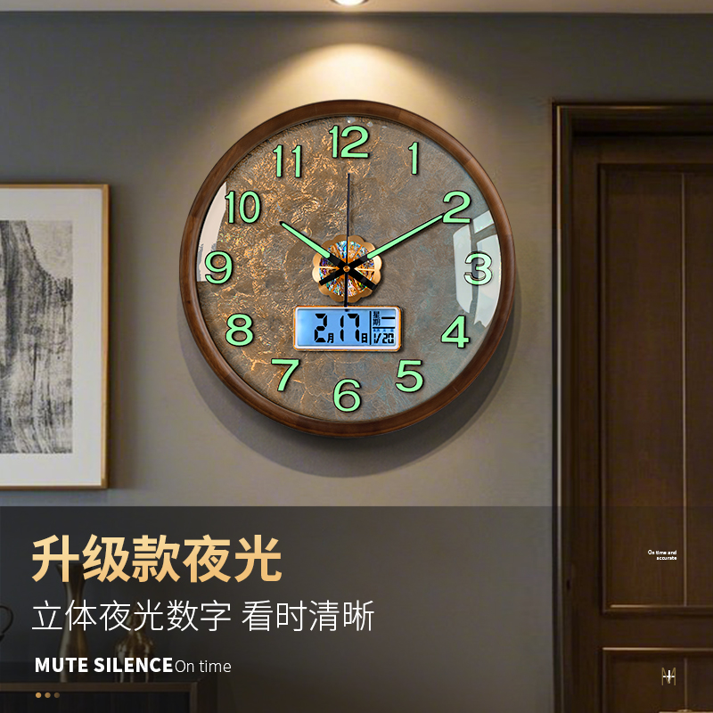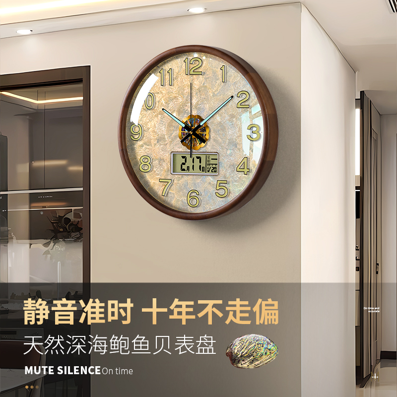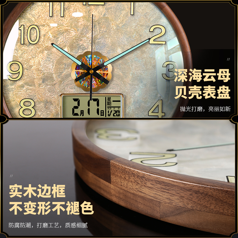 2025新款 饰高级感贝壳时钟表 实木挂钟高端大气网红艺术客厅挂墙装