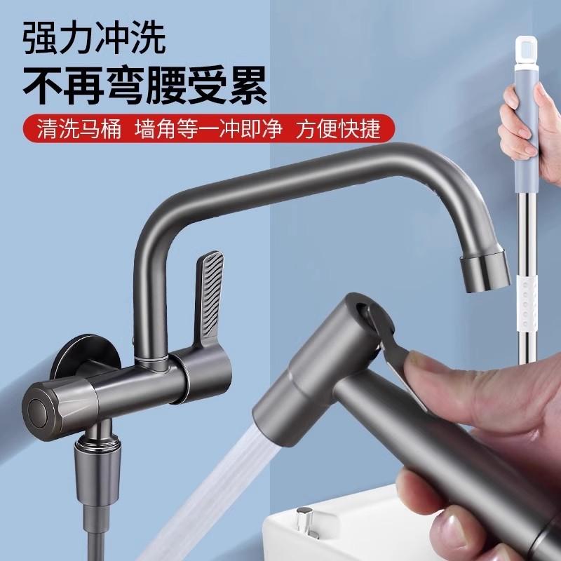全铜入墙式 拖把池水龙头单冷一进二出阳台洗衣池洗衣机厨房水龙头