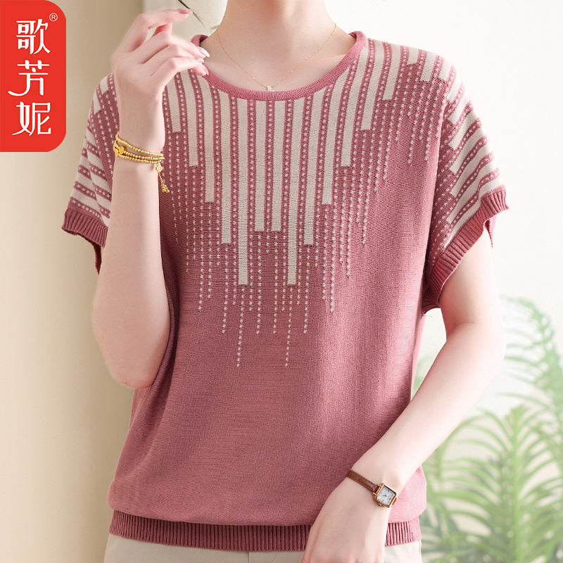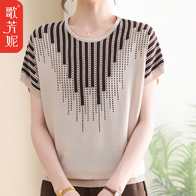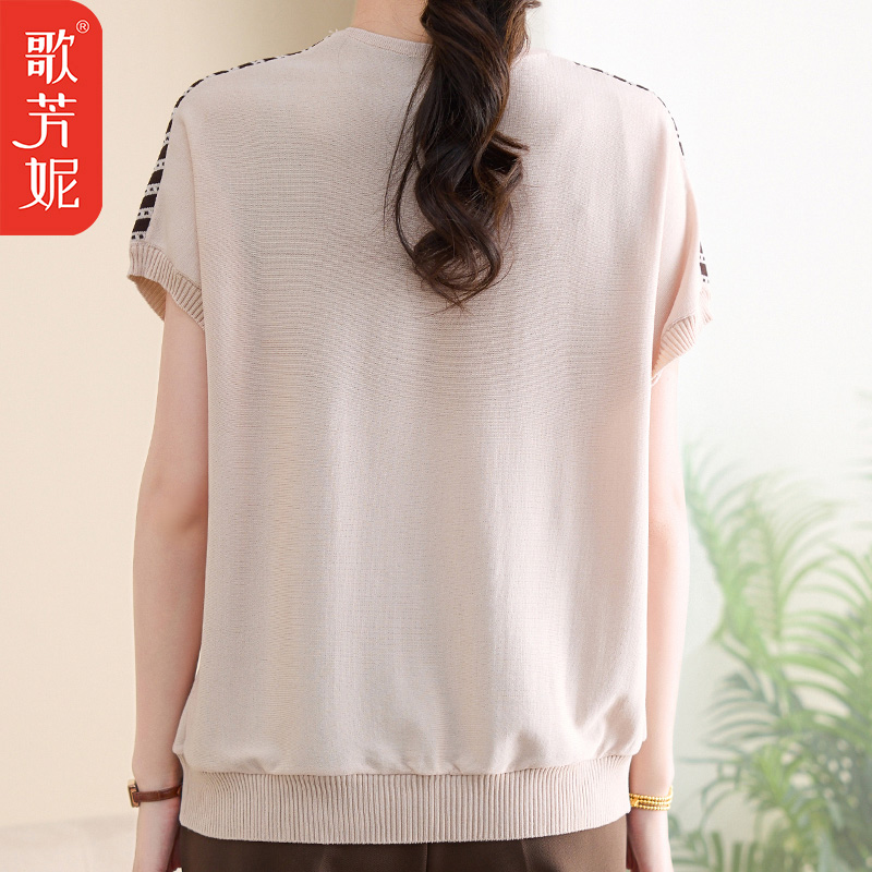 上衣服妈妈洋气冰丝短袖 小衫 T恤中年女装 时尚 夏装 中老年2025新款