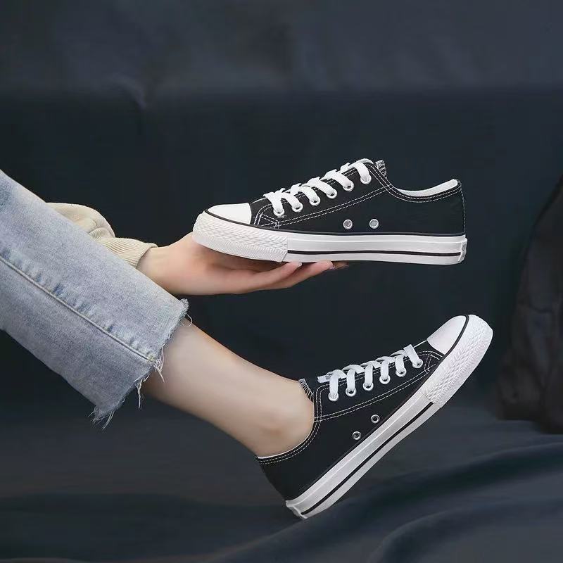 帆布鞋 女百搭学生休闲运动鞋 女2025新款 透气黑色板鞋 夏季 环球经典