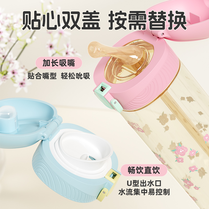 富光一盖双饮保温杯新款 水杯儿童上学专用女生高颜值吸管杯子男孩