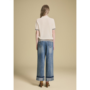 新款 女2025夏季 显瘦八分阔腿天丝牛仔裤 诗篇专选复古翻边直筒裤