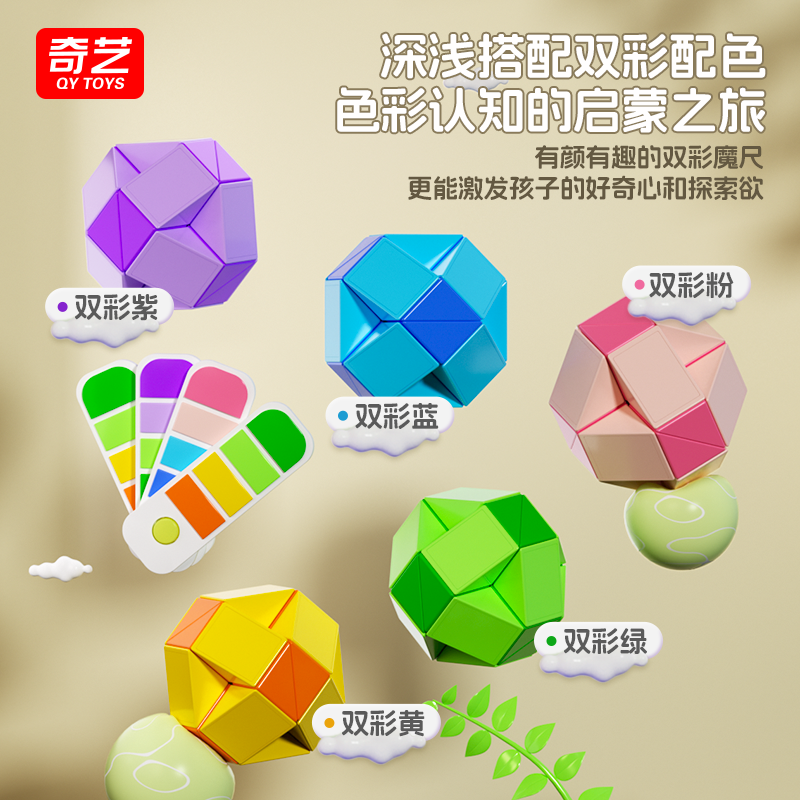奇艺双彩百变魔尺24段36段48节72段彩色儿童益智玩具幼儿园小学生