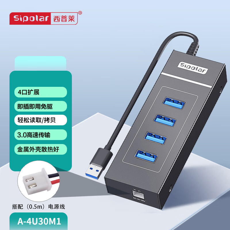 西普莱A 机扩展支持12至24V连接器供电 4U30M1工业级USB3.0集线器4口笔记本台式