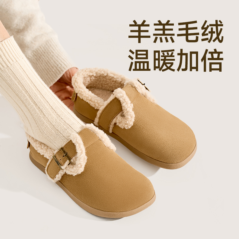 冬真皮全包一脚蹬懒人羊羔毛毛棉鞋 女2025新款 防水加绒勃肯鞋 UBZ