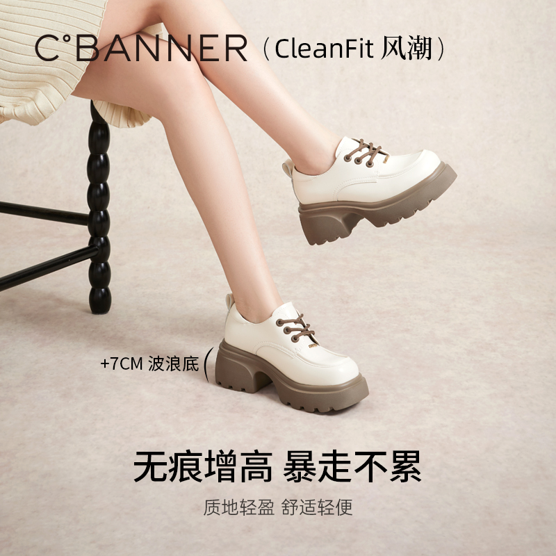女鞋 百搭单鞋 百搭 春秋气质黑色系带牛津鞋 千百度厚底增高小皮鞋