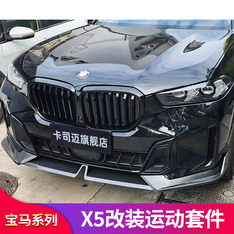 适用宝马X5L MP前唇前铲尾翼尾唇前中网熏黑黑化尾喉黑武士套件