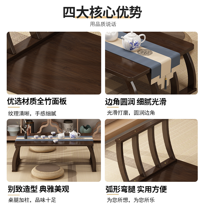 飘窗小桌子家用炕桌中式 禅意榻榻米茶桌茶室实木坐地小矮桌国学桌