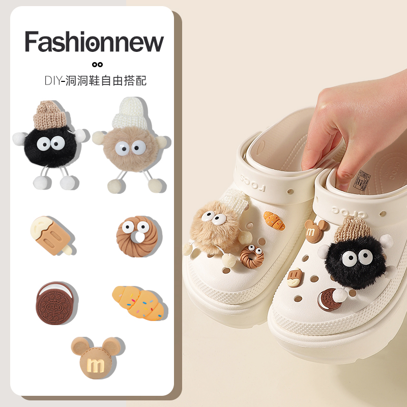 饰可爱高级冬季 洞洞鞋 花适配crocs卡骆驰配件装 扣diy毛绒鞋 配饰鞋