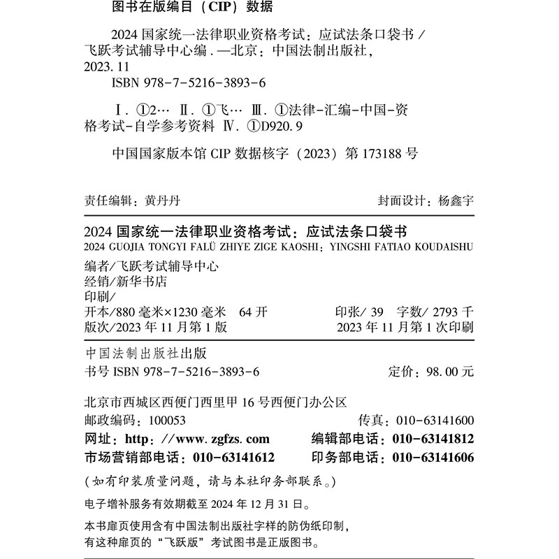 法律法规内容全面 2024国家统一法律职业资格考试 司法解释 免费增补 方便携带 2024法考飞跃版 关联索引 应试法条口袋书