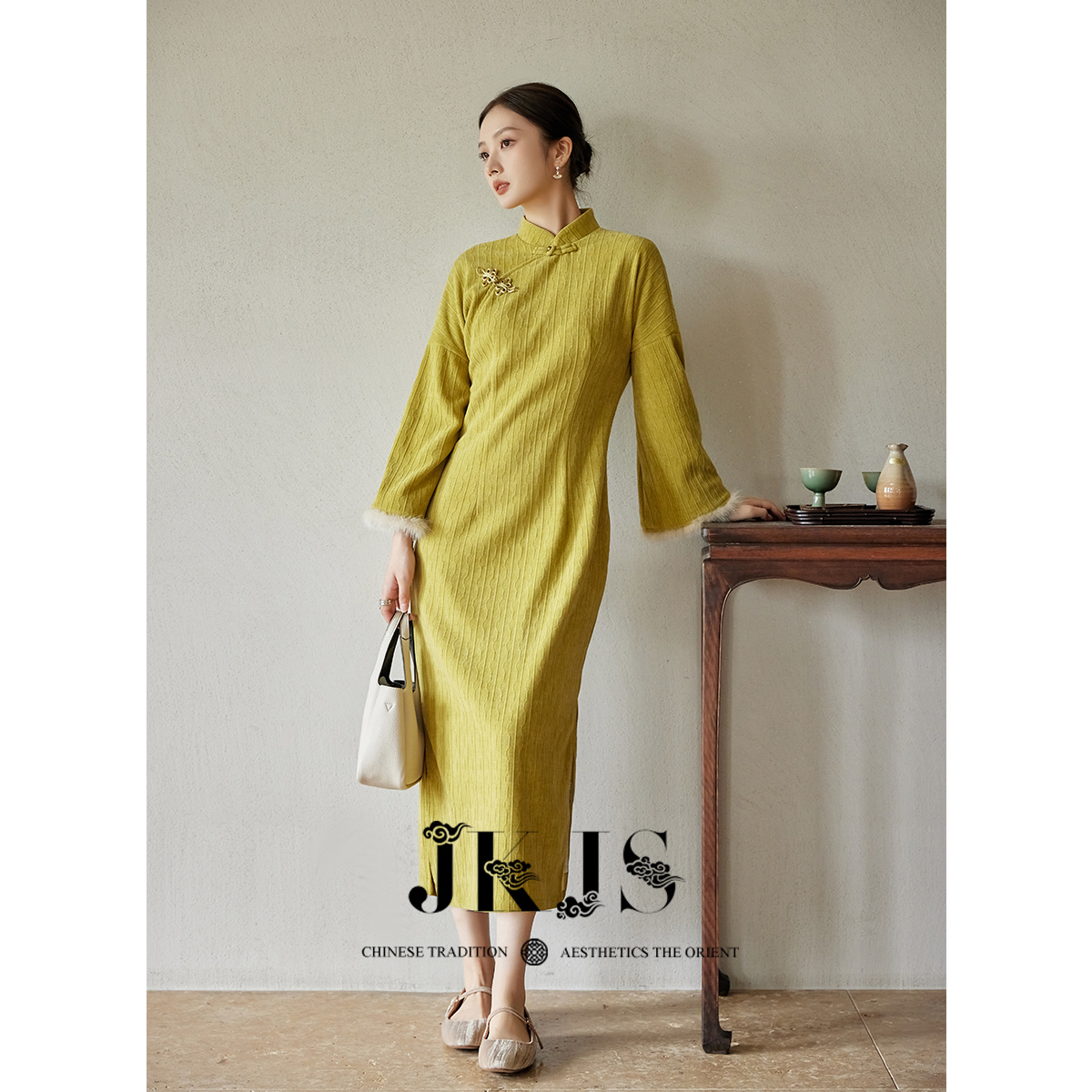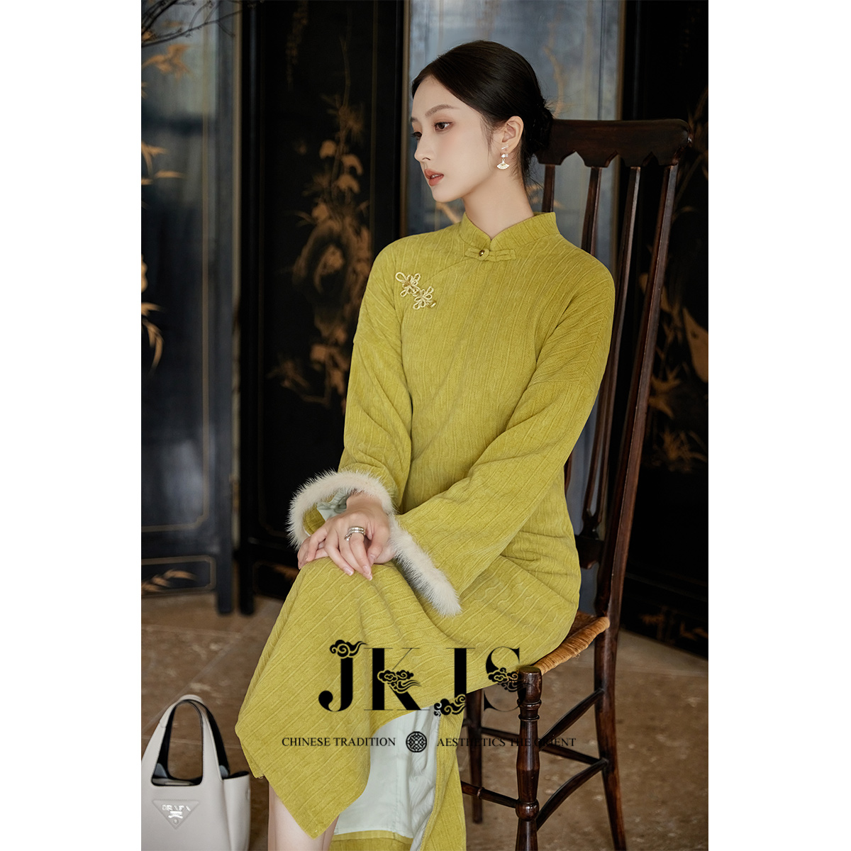 菲梦伊原创钉珠提花连衣裙女秋季 国风高端气质贵妇旗袍裙子 新中式
